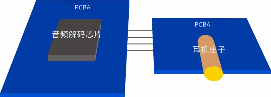 硬件PCBA連接如(圖3),耳機(jī)座子側(cè)的PCB客戶(hù)還嘗試做了4層板和6層板,目的是增加地層(增加地面積)。