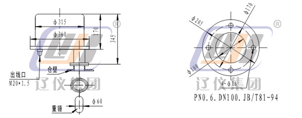 UL-3型物位開關(guān)采用擺復(fù)式傳動系統(tǒng)。擺動軸的軸端對稱掛有重錘及配重砣。無物料時(shí),重錘失重,彈簧拉力克服了配重砣的重力使軸靜止,電機(jī)使測量撥叉張開動作,微動開關(guān)動作,發(fā)出料面信號;若物料夾住重錘下行,亦可使拔叉張開動作,發(fā)出料面信號,同時(shí)限位座靠在底板上,限制重錘繼續(xù)下行,使儀表內(nèi)部免受沖擊及拉力,切斷電機(jī)電源。