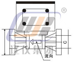 從箭頭所示的一側(cè)進(jìn)入流量計(jì)的液體推動(dòng)阻尼器,使之固定在測(cè)量室。因?yàn)榛傻膹椥院妥枘崞鞯慕嵌榷箍偸俏挥诹阄坏淖枘崞魇歉鶕?jù)流量大小而改的。